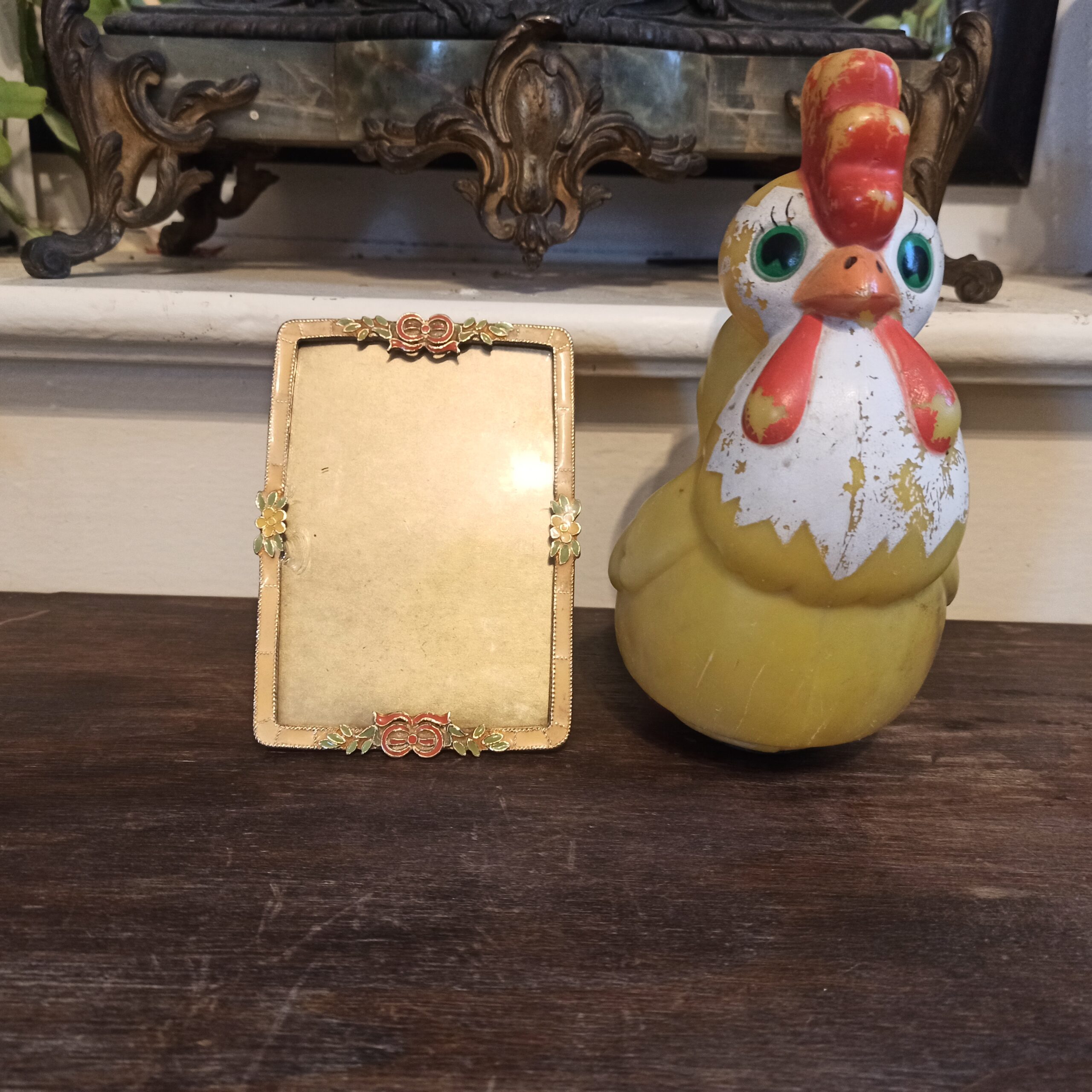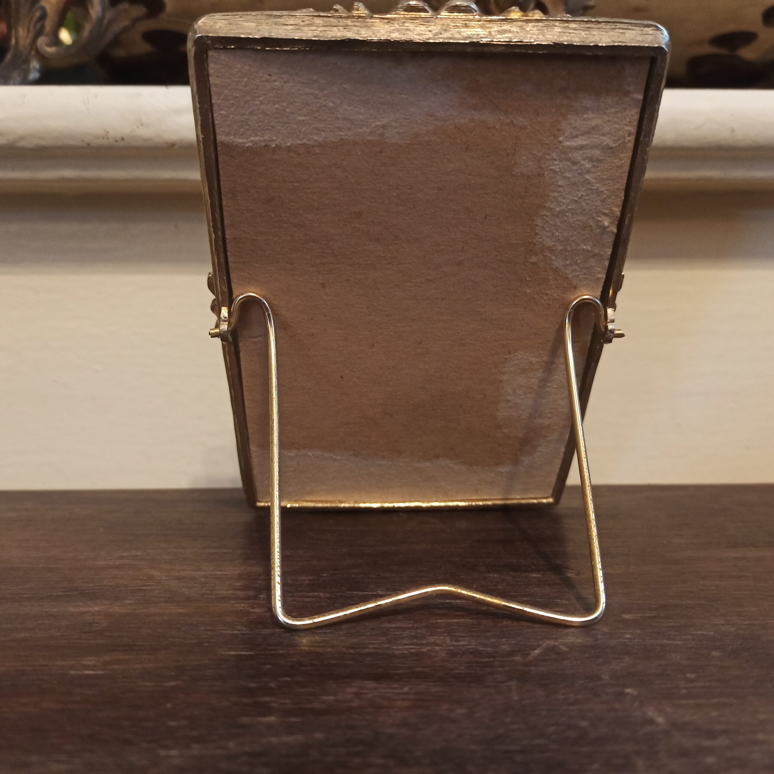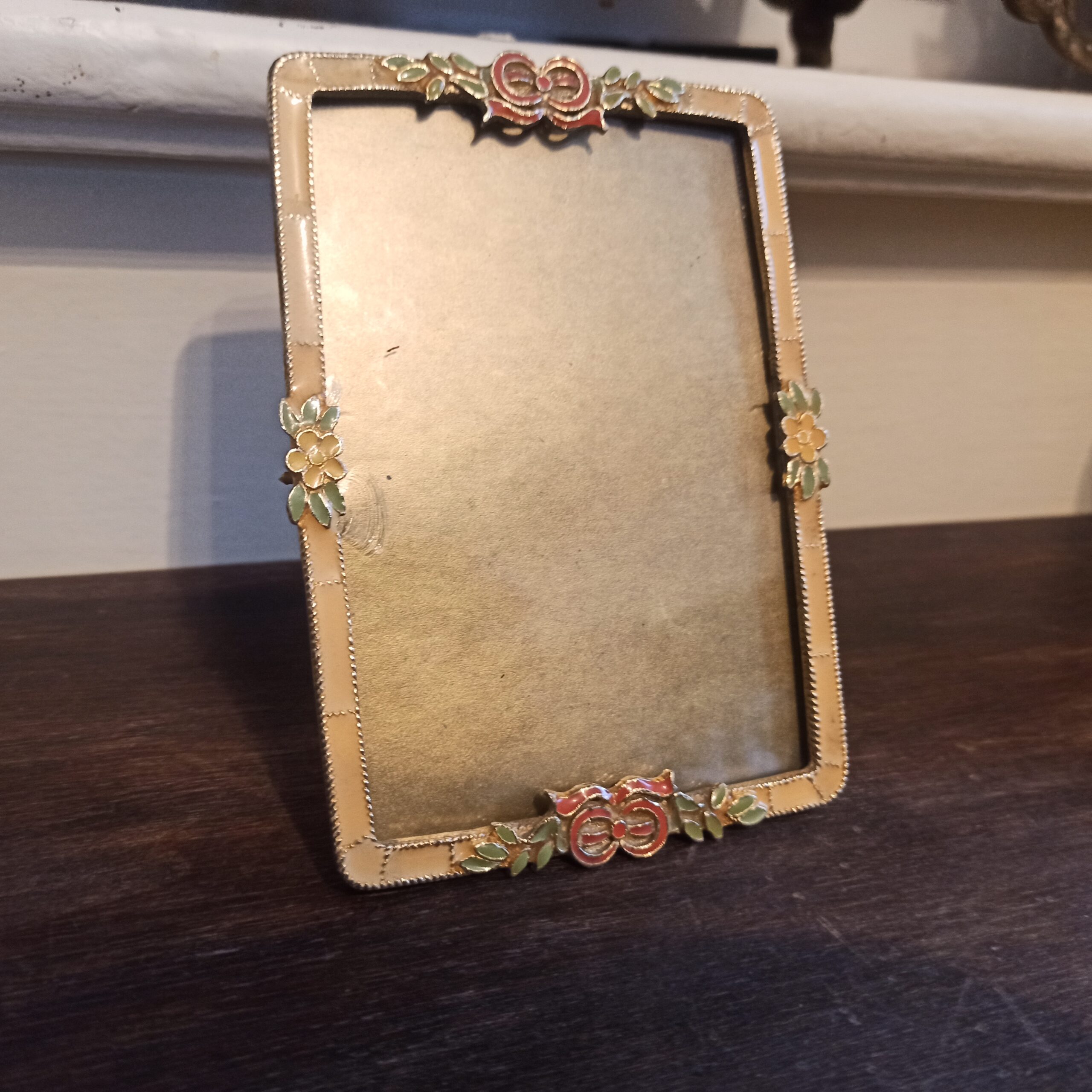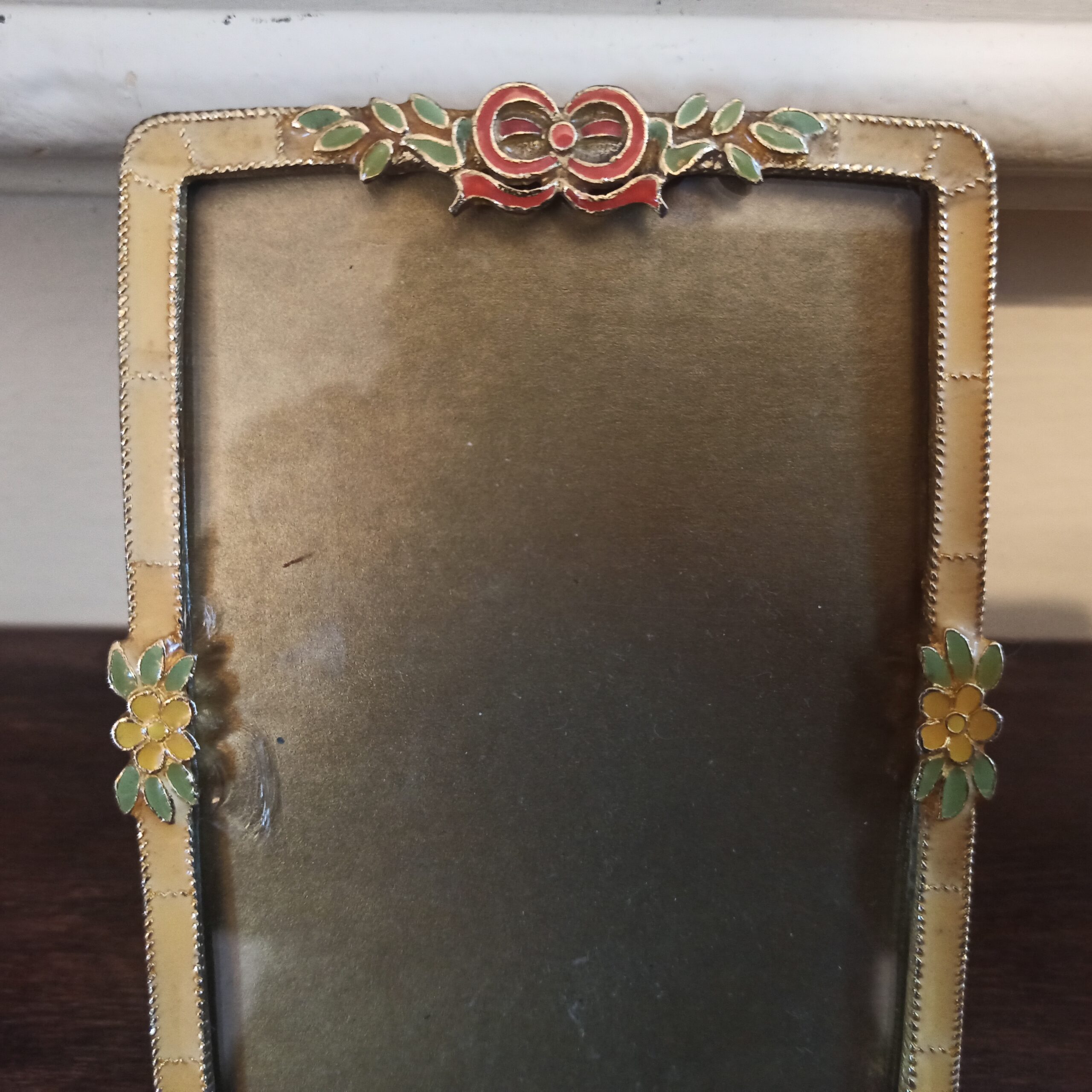 Ancien cadre photo. Etain et métal doré. Décor nœud et fleur. Bel état. 9.5×14.