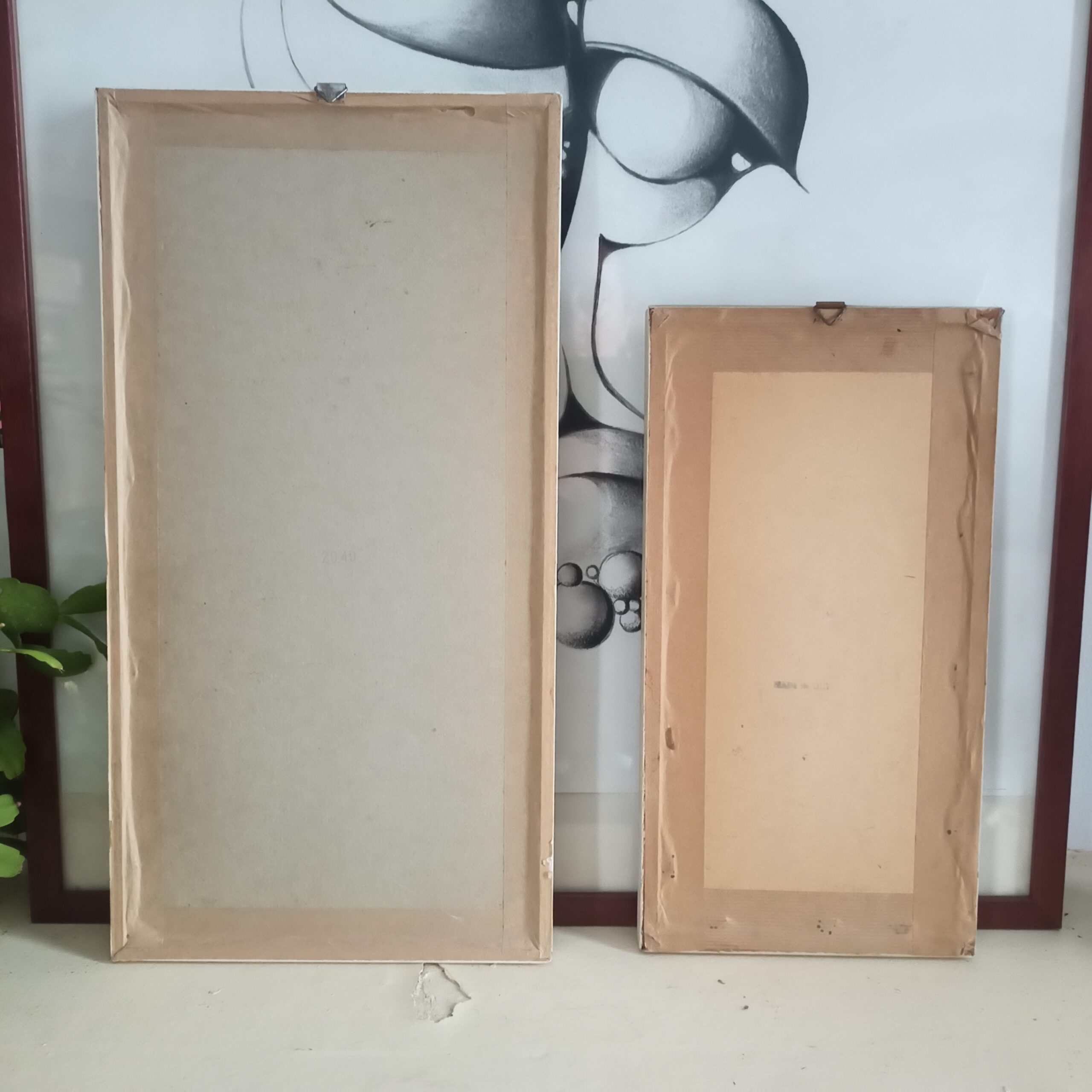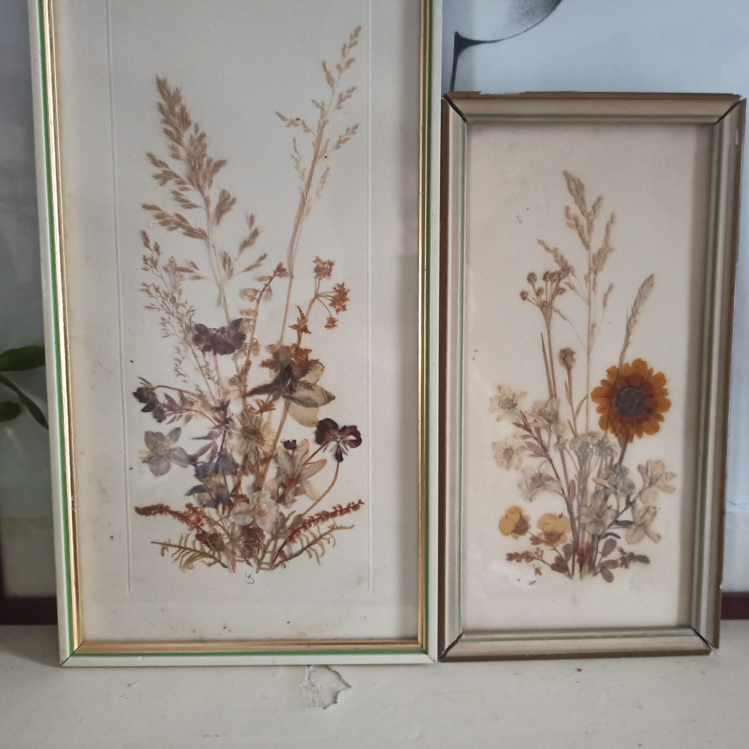 Duo de cadres vintage. Herbiers. Ton beige. 17×32. Et 41×21. Bon état.