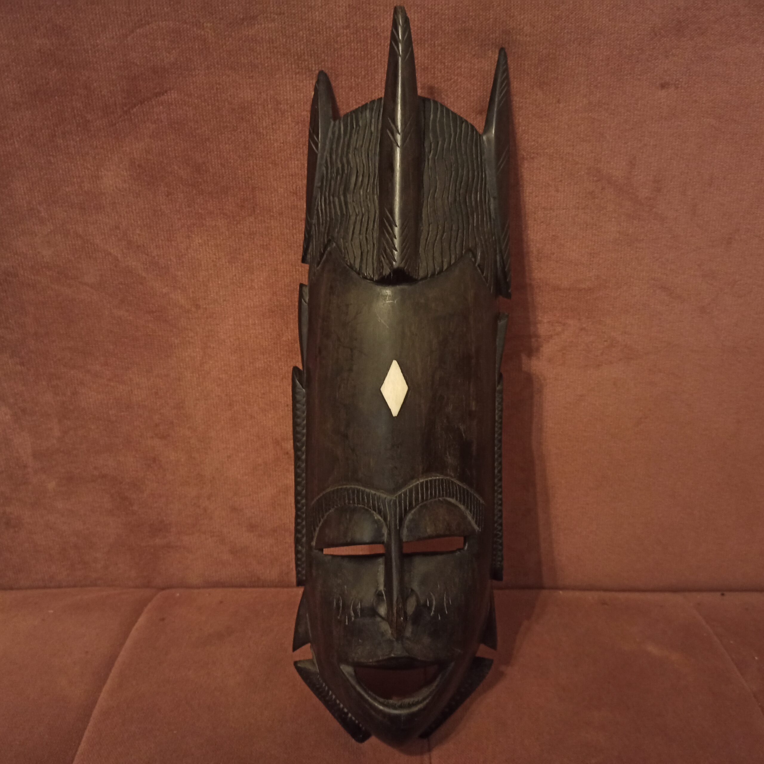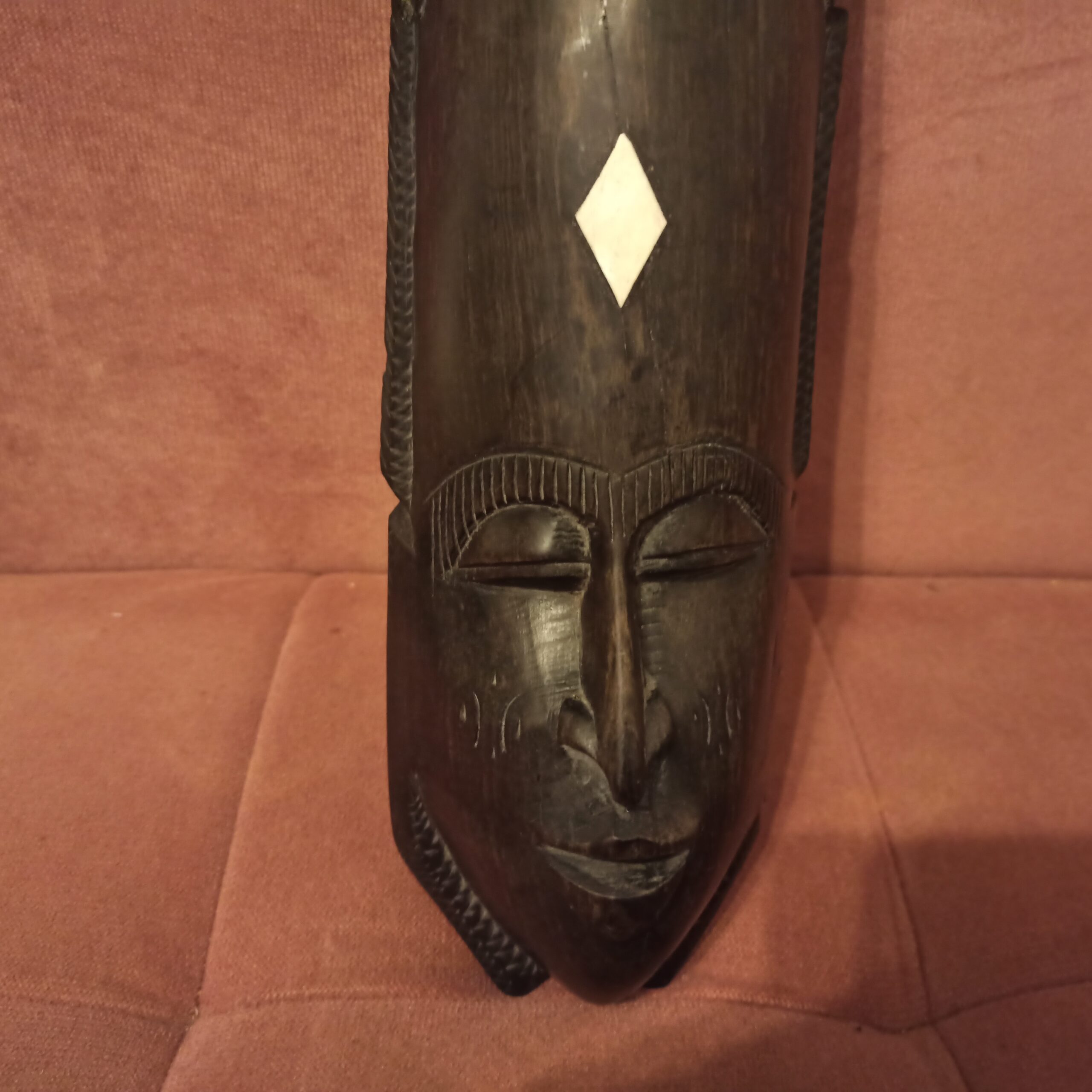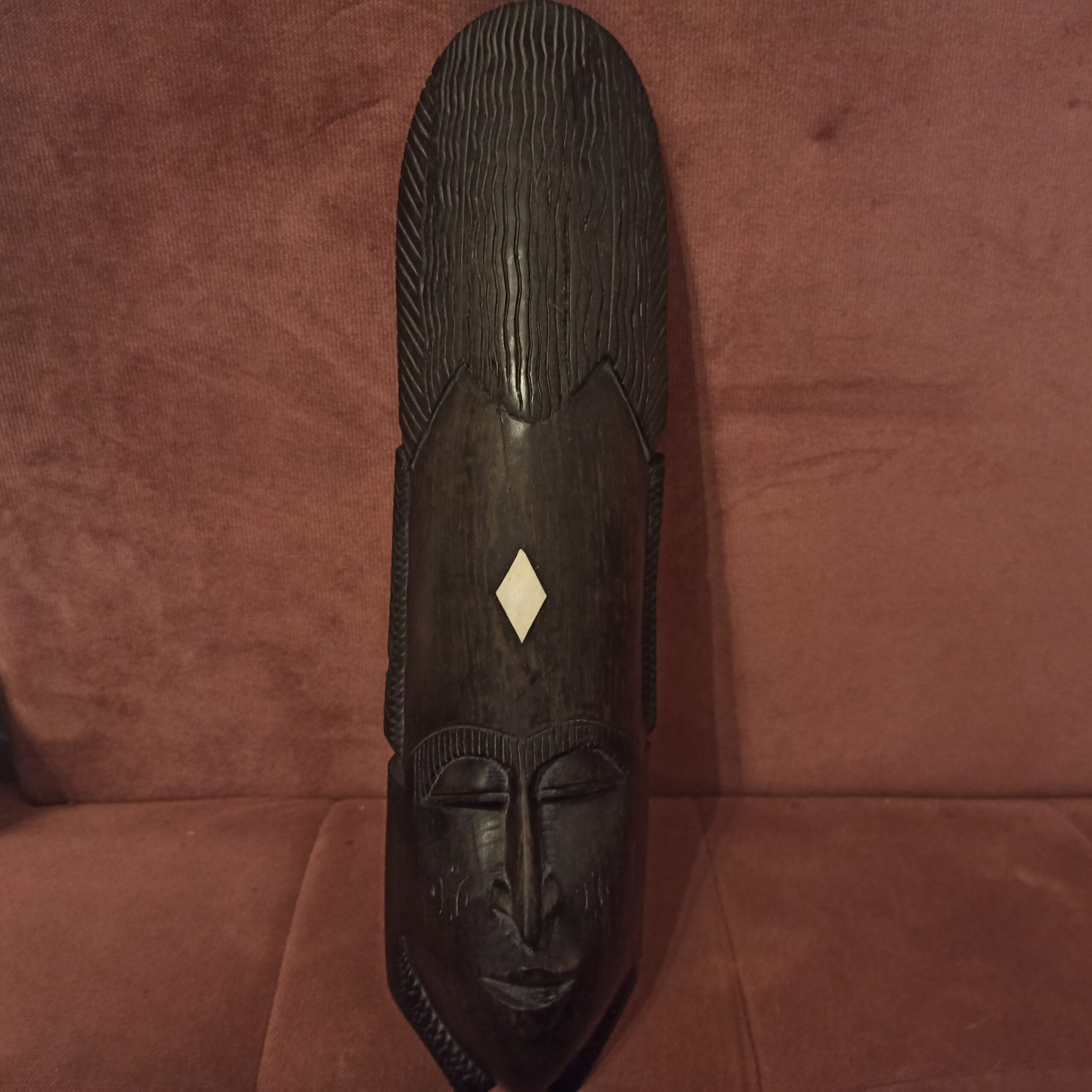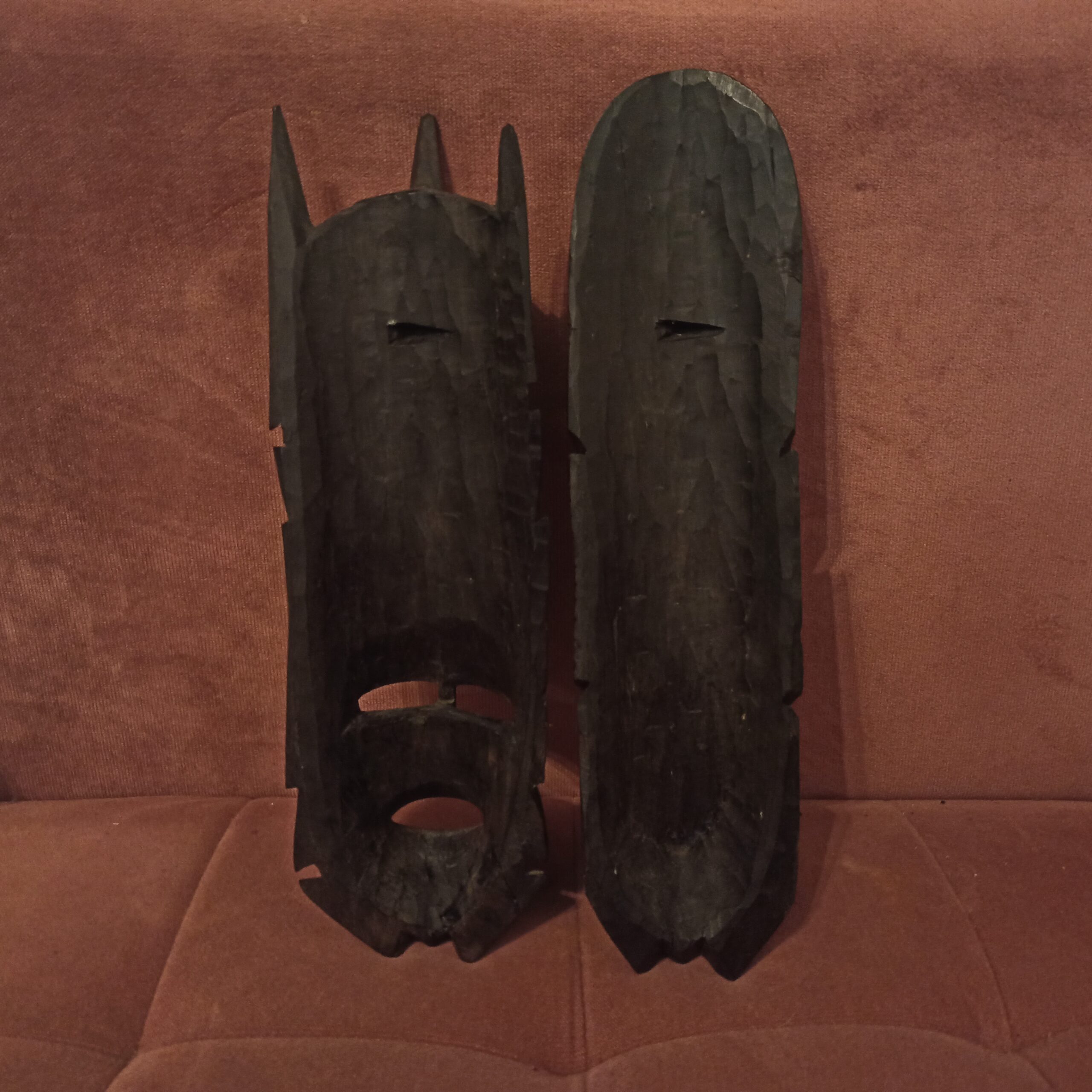 Deux beaux masques africains. Achetés au Gabon dans les années 90. Bois d’ébène. Longueur 44. Largeur 12.