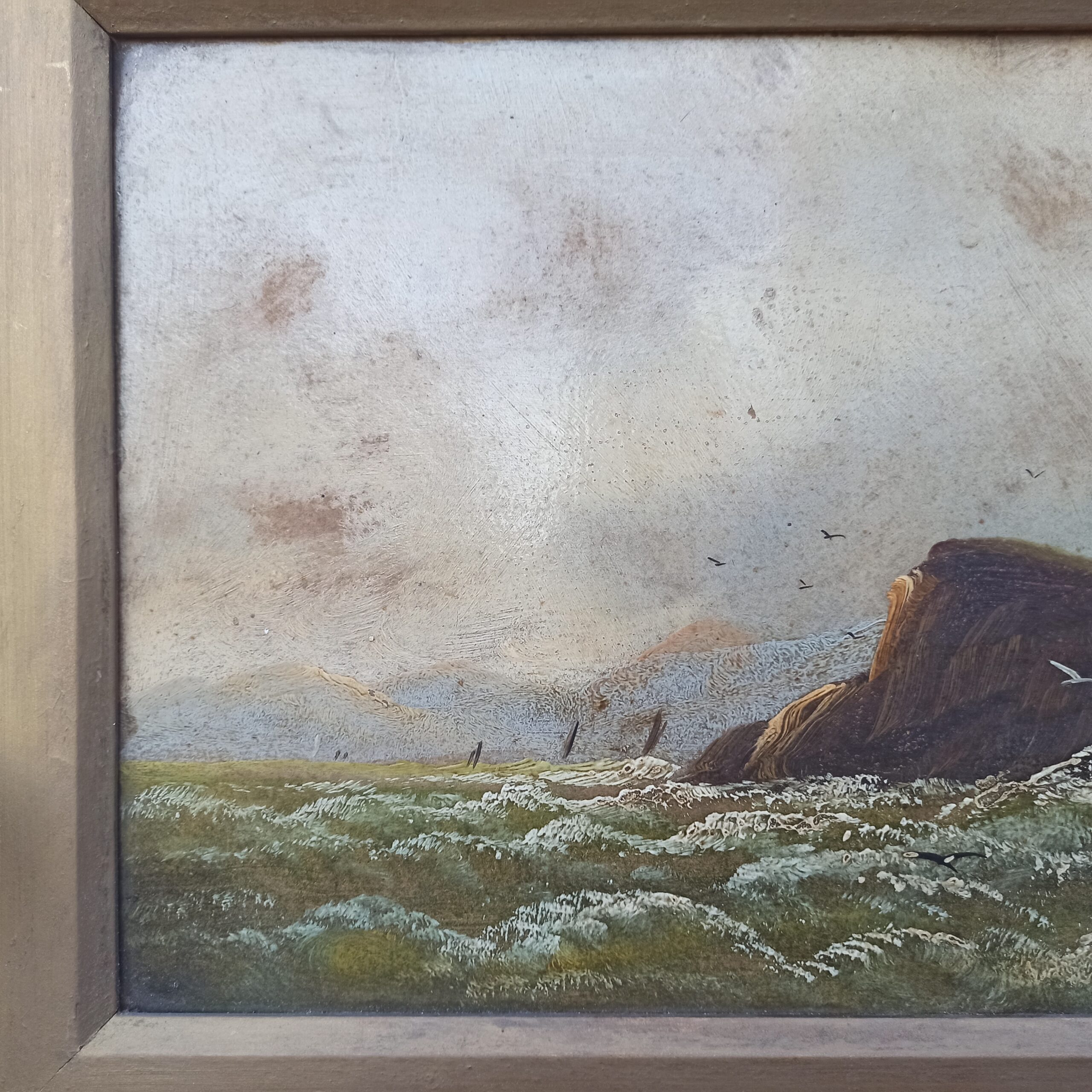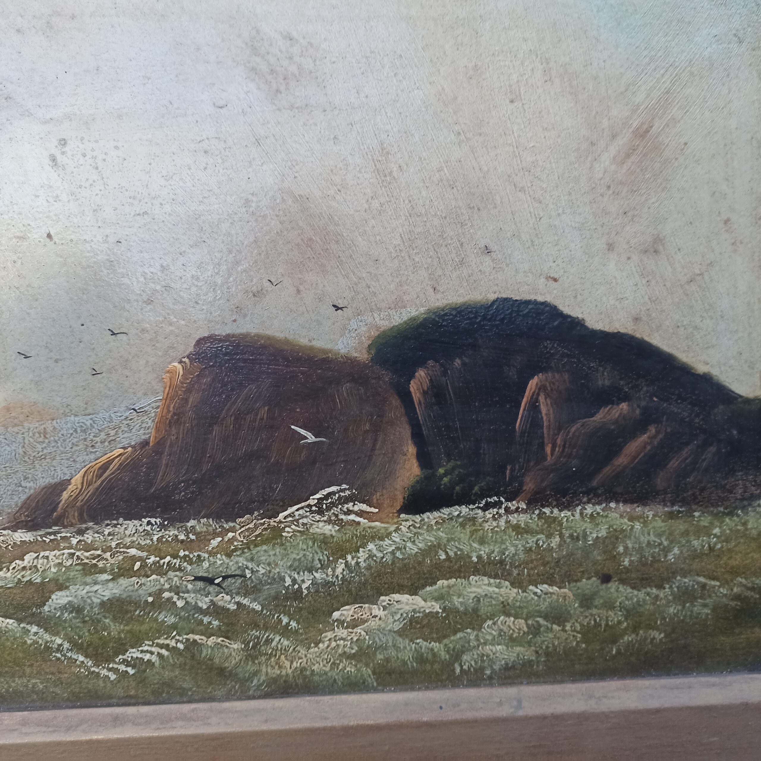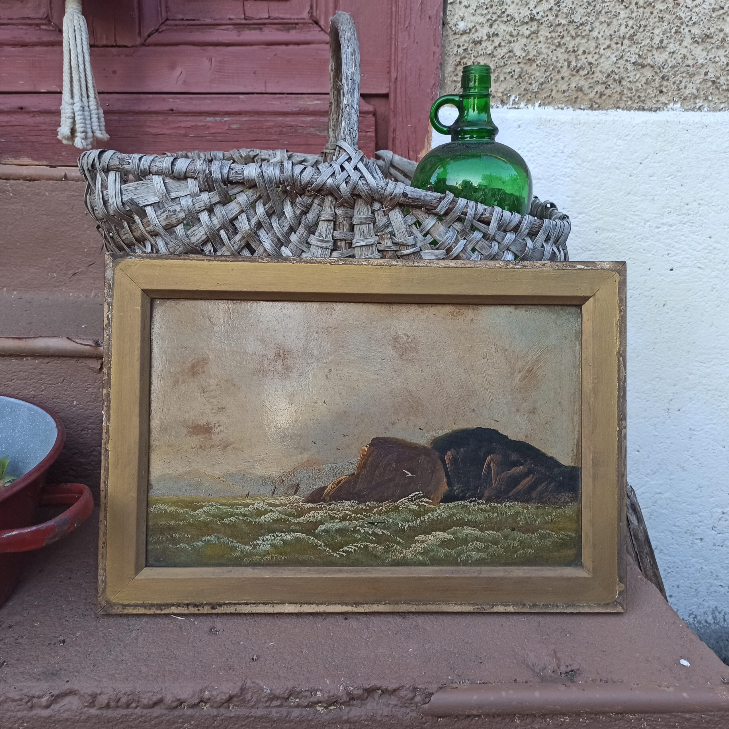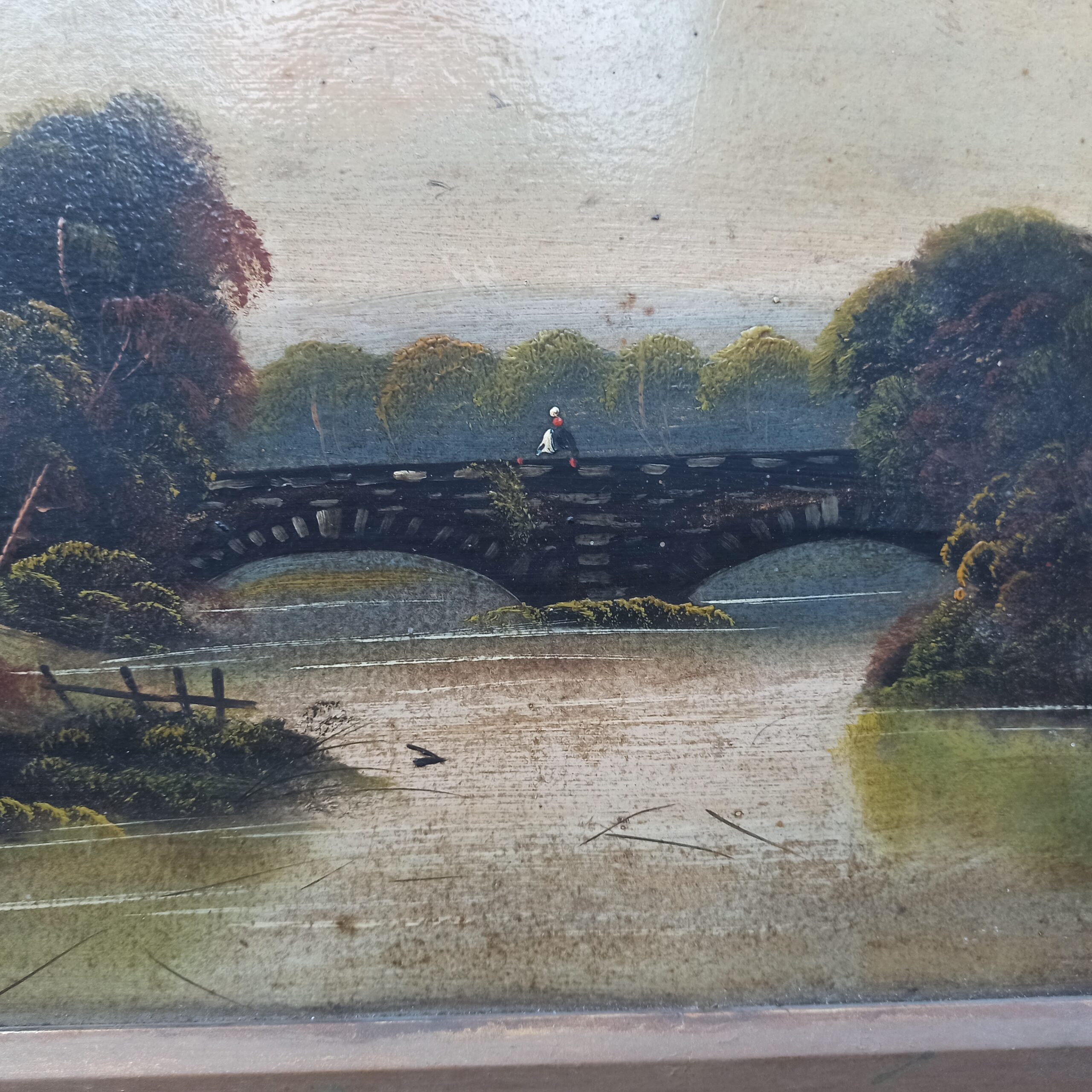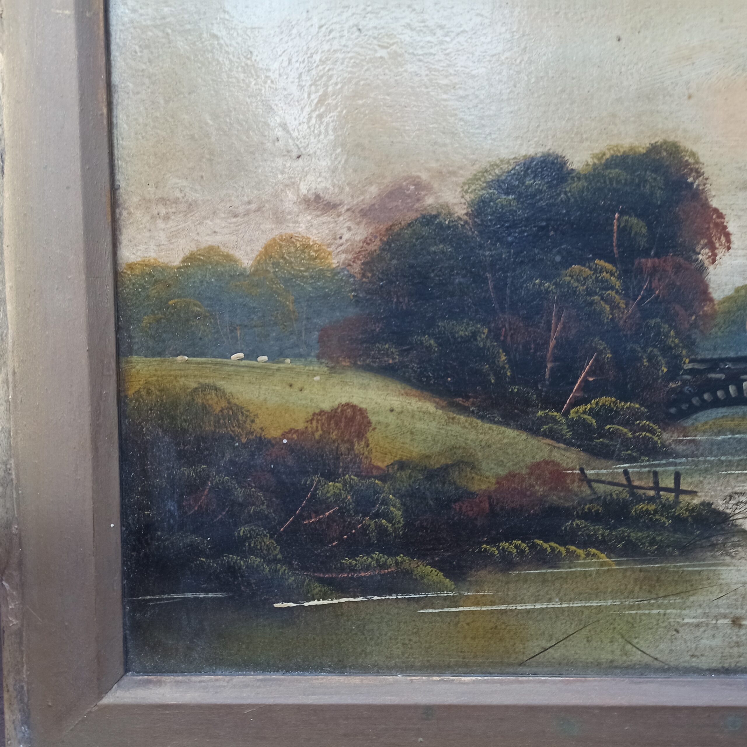 Deux huiles sur carton. Anciennes. Représentant des paysages. Cadres en bois. Ne sont pas fixées derrière. Pas de signature mais belle réalisation. A nettoyer. 31×46 avec cadres. Toiles 40×24.