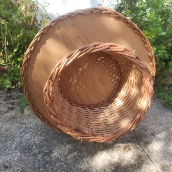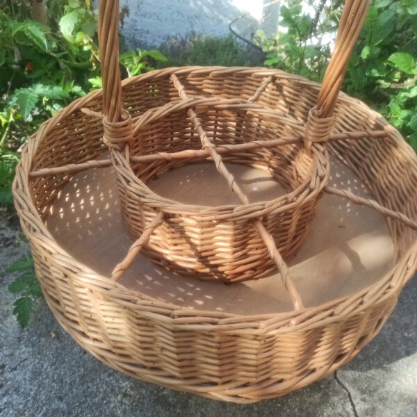 Panier en rotin et bois. Vintage. 12 emplacements de bouteilles. Déco et pratique! Largeur 50. Hauteur 60.