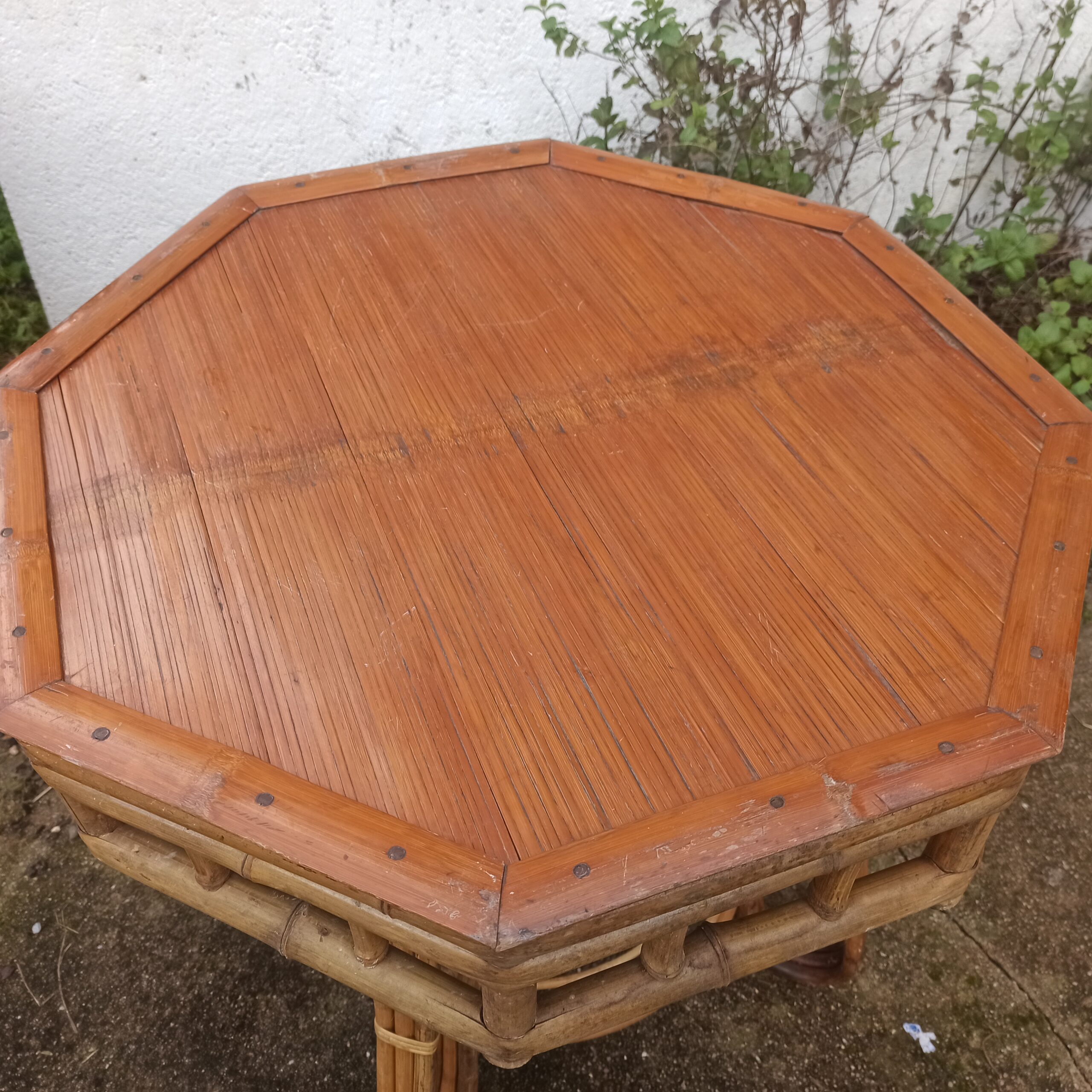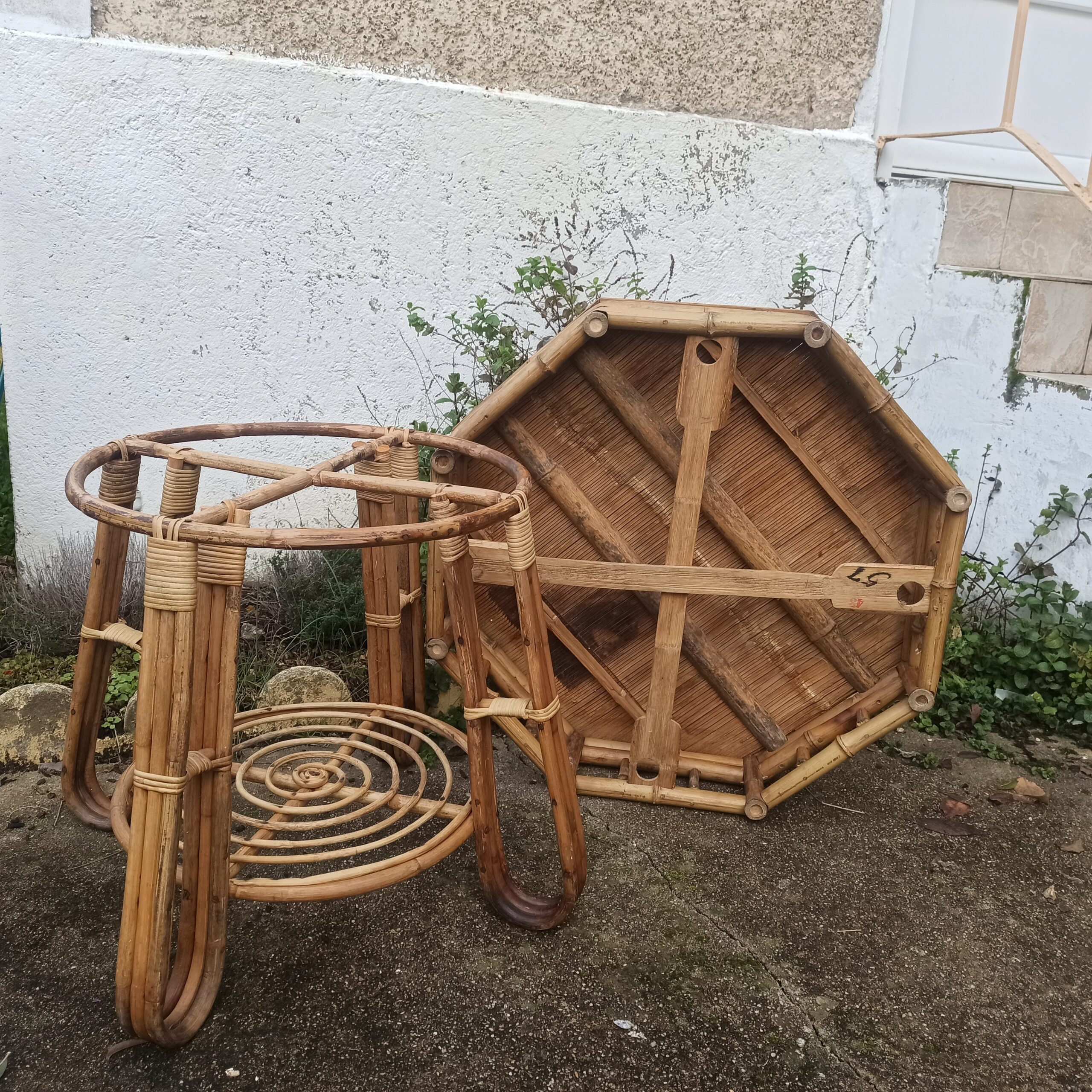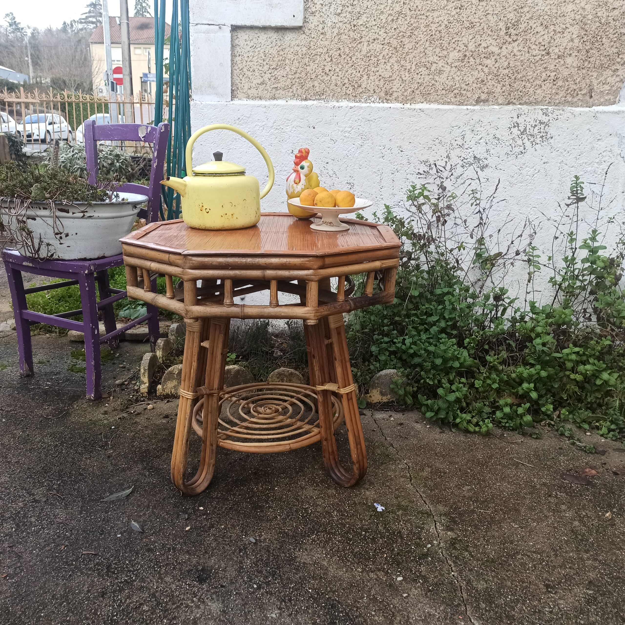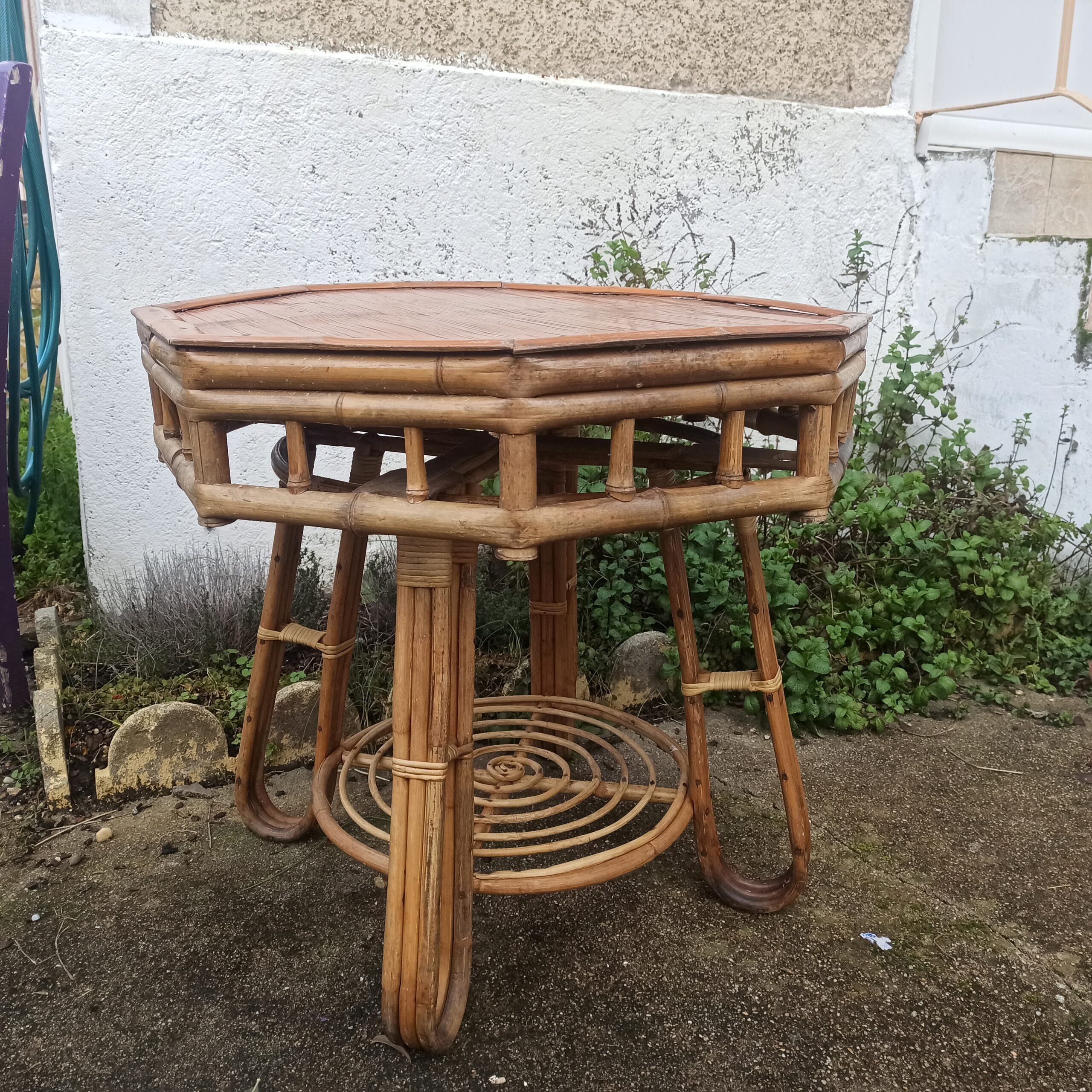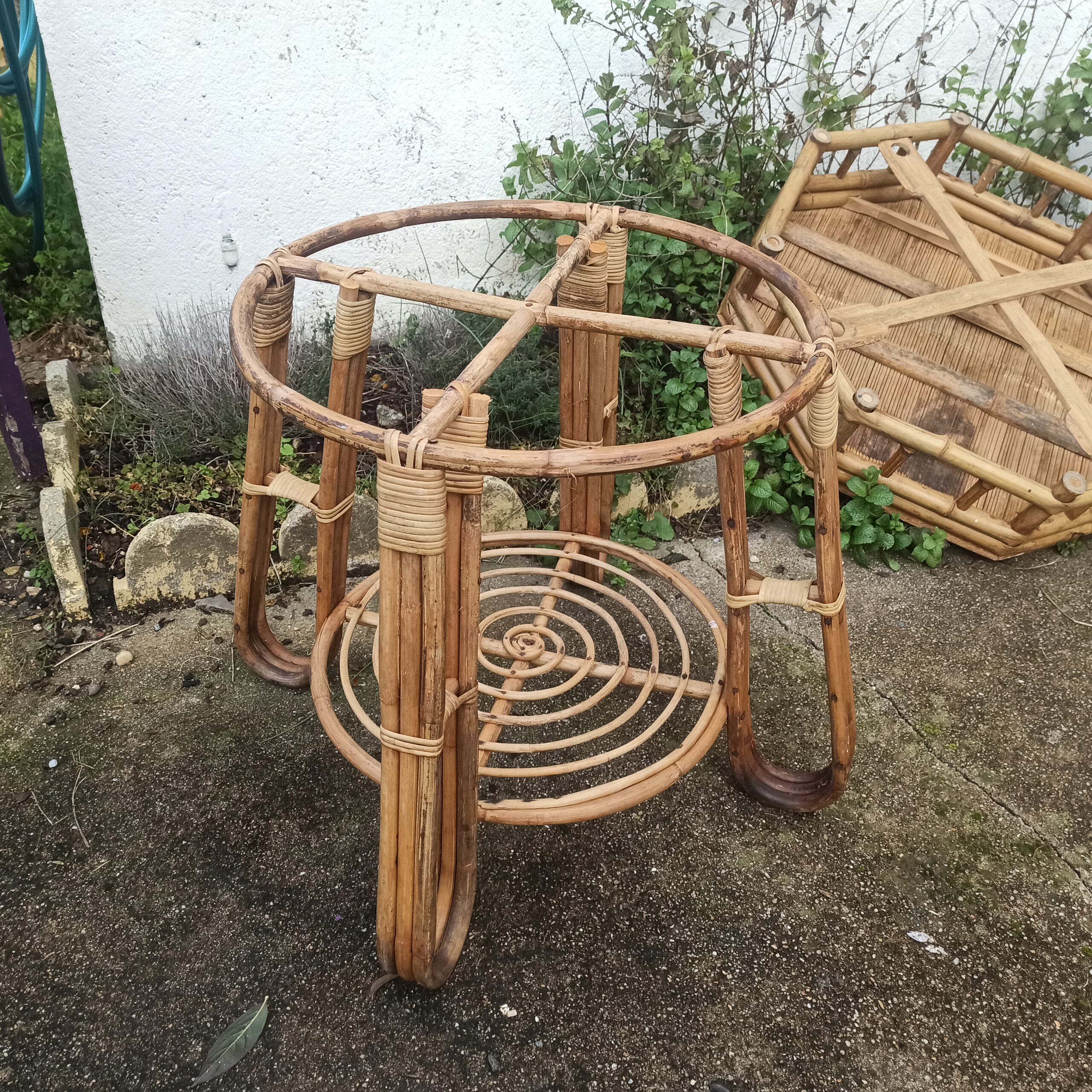 Table d’appoint. En rotin. Vintage. Hauteur 60. Diamètre 45.